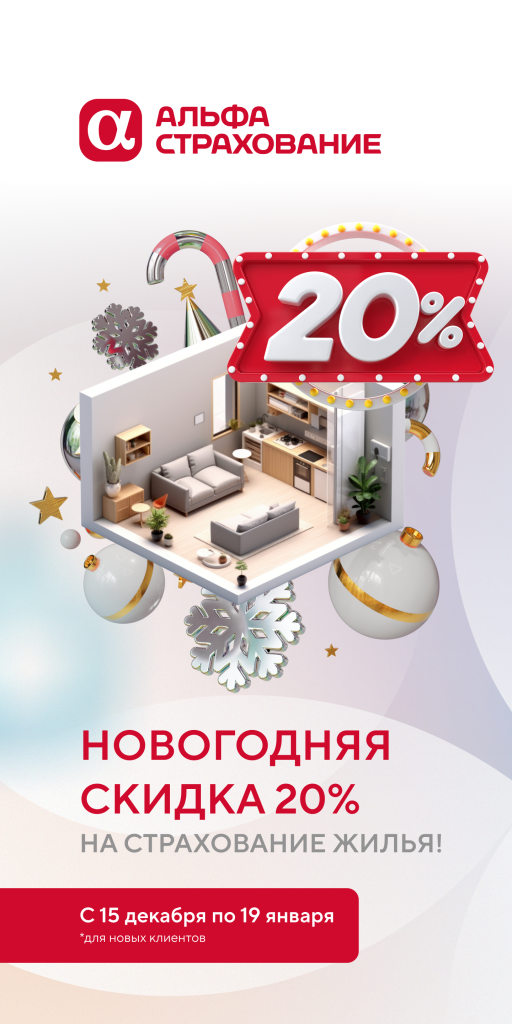 Новогодняя скидка 20% на страхование жилья!